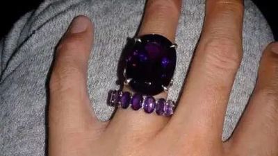 The stone - which engulfs her finger - is a purple variety of quartz and is said to be a 'spiritual protector' for the person who wears it.