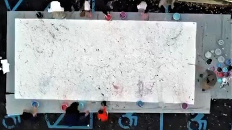 The painting was created splatter style with sticks and various colors of paint. It is aiming to take the record from Pollack's "Mural," which is on display at the Guggenheim Museum in New York City.