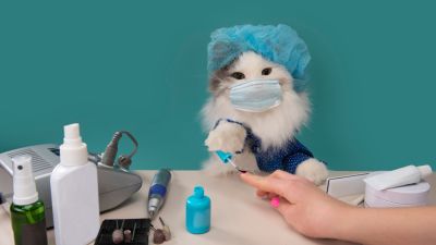 Four-month-old curious cat Mau was sitting on the table while owner Liana Nicolae  watching her worked on the elaborate show nails.