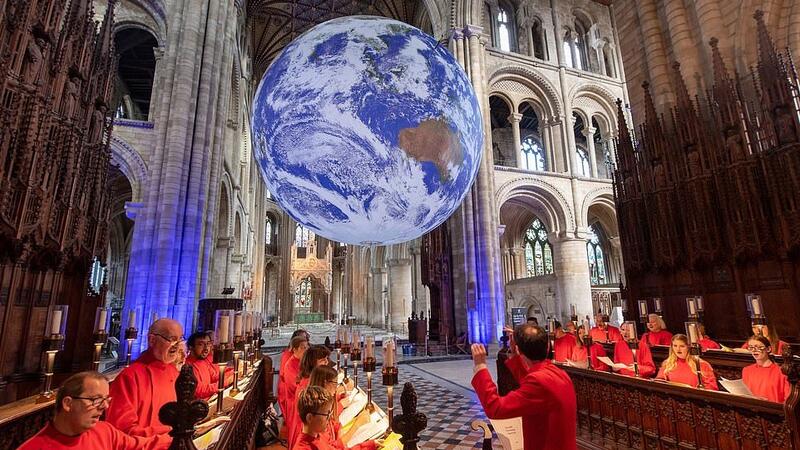 In the beginning, God created the heavens and the Earth and visitors to Peterborough Cathedral can now feel one step closer to his work as they worship beneath a 23-ft wide replica of our planet.
