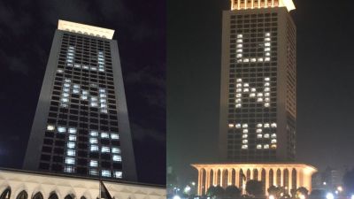 The Egyptian Foreign Ministry on Friday lit up its headquarters in downtown Cairo with “UN75”, celebrating the 75th anniversary of the United Nations on October 24.