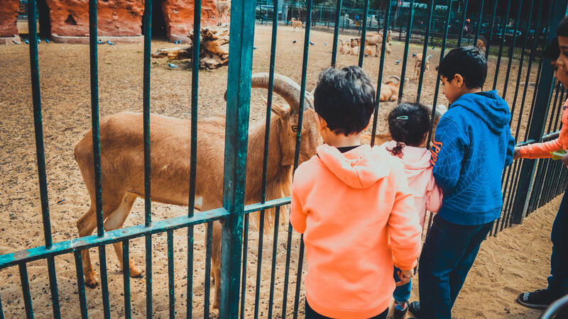 kids playing and feeding barbary sheep at giza zoo. (Shutterstock/ File Photo)