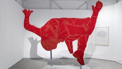 In the next room, a large wooden installation holds sketches, diary exerts, and paintings that Soi created during and after his visit to Palestine. The structure itself is somewhat impenetrable, full of twists and turns that echo the boundaries and restriction of people’s movement within the conflict zone.