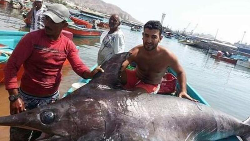 Fisherman returns with rare catch in the Gulf of Aqaba.