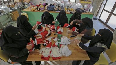 Gaza Muslim Women Spread Holiday Cheer by Sewing Santa Claus Dolls
