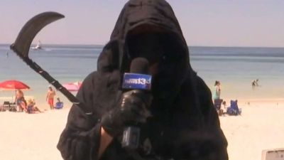 This lawyer is haunting Florida beaches as the Grim Reaper to serve as a warning and a protest (Twitter)