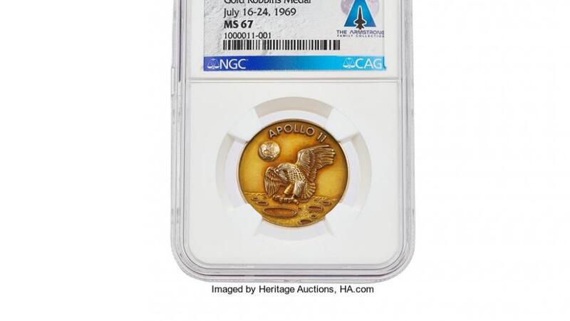 The medal -- one of only three minted for the mission's crewmembers including Armstrong, Michael Collins and Buzz Aldrin -- sold for $2,055,000 as part of the Armstrong Family Collection by Dallas-based auction house Heritage Auctions.