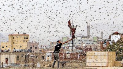 Images and videos posted on social media showed layers of creeping locusts laying waste to lemon farms in Marb, dates and alfalfa farms in Hadramout and flying swarms plunging cities into darkness. “The locusts have eaten all kinds of green trees, including the sesban tree. The losses are huge,” Abu Baker added.