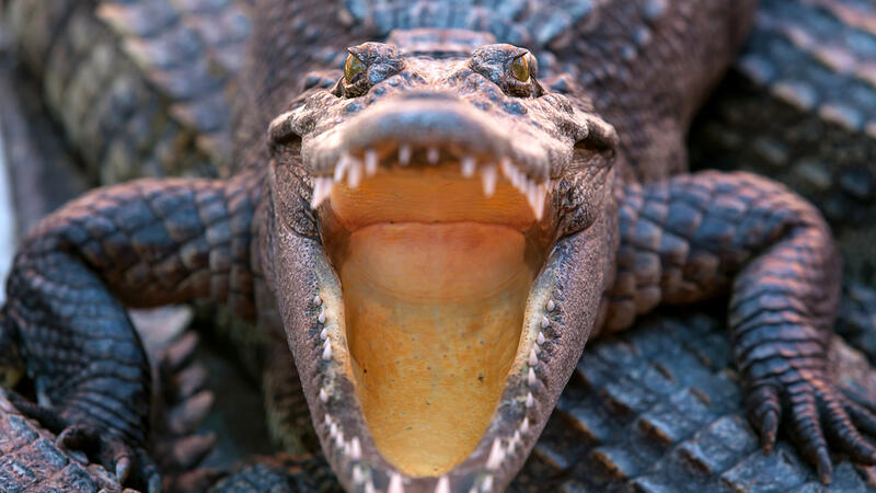 Villagers cut open a crocodile and pulled out the bloody remains of their friend after he was eaten while fishing in Indonesia.