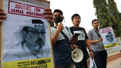 Humanitarian activists in Makassar City held a demonstration related to the death of Jamal Khashoggi, one of the Saudi Arabian journalists in Turkey (Shutterstock)