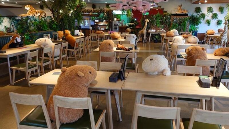 A cafe in Japan is using plush capybaras, a giant rodent native to South America, to enforce social distancing in its seating area, the Independent reported.