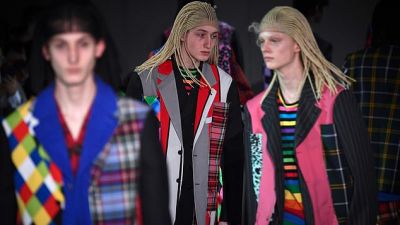 The models appeared on the catwalk during men's fashion week in Paris earlier today.
