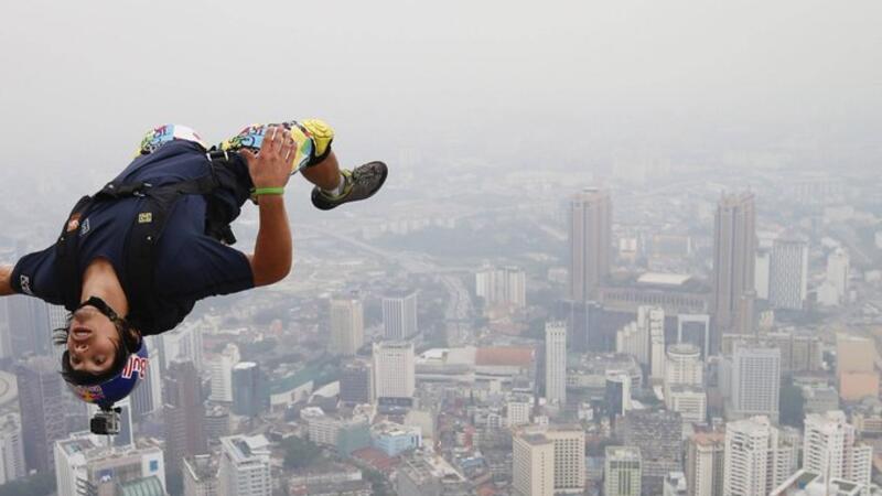 Reffet had BASE-jumped off the Burj Khalifa, the world's tallest building at 828 meters (2,716 feet) in Dubai, setting a world record. BASE is an acronym for building, antenna, span and earth.