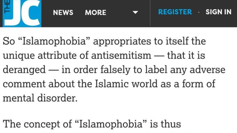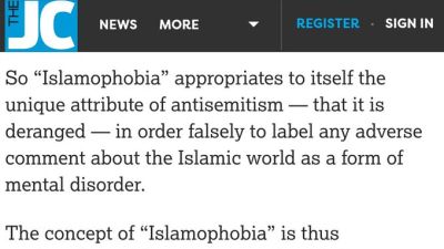 "The concept of 'Islamophobia' is thus profoundly anti-Jew. To equate it with the dehumanising, insane and essentially murderous outpourings of Jew-hatred is obscene."