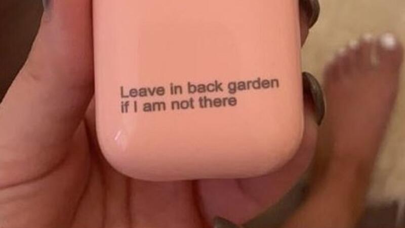 Hilarious photos show how a woman accidentally engraved her personalised headphones with instructions for her delivery driver.