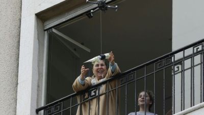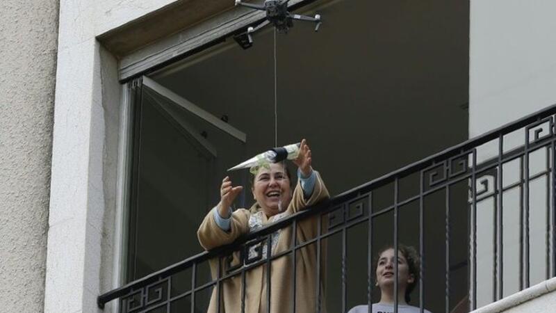 In a quiet Lebanese town under lockdown over the novel coronavirus, a drone buzzed towards a balcony on Saturday to deliver a red rose to a mother grinning in surprise.