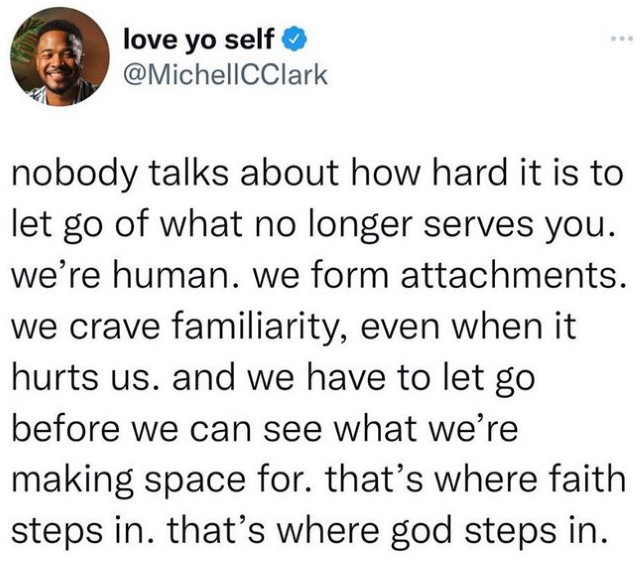 Seeing yourself as someone who is worthy of good things is instrumental when it comes to letting go. Not only that but knowing what you deserve and your own worth will make you realize when you should let go of things that do not value you.