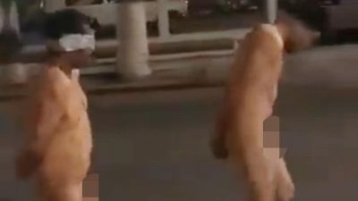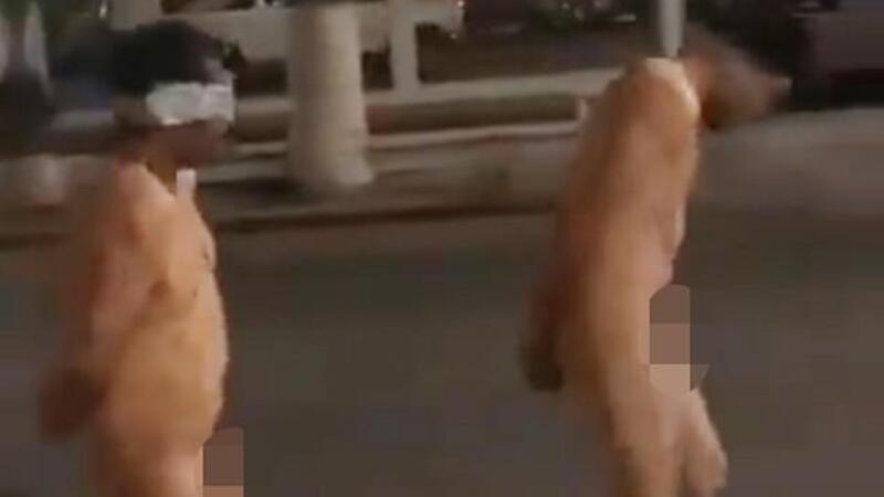 The half minute video clip shows two naked men running in the middle of an avenue in Puerto Peñasco, a resort town that lies just south of the Arizona border off the Gulf of California in the state of Sonora.