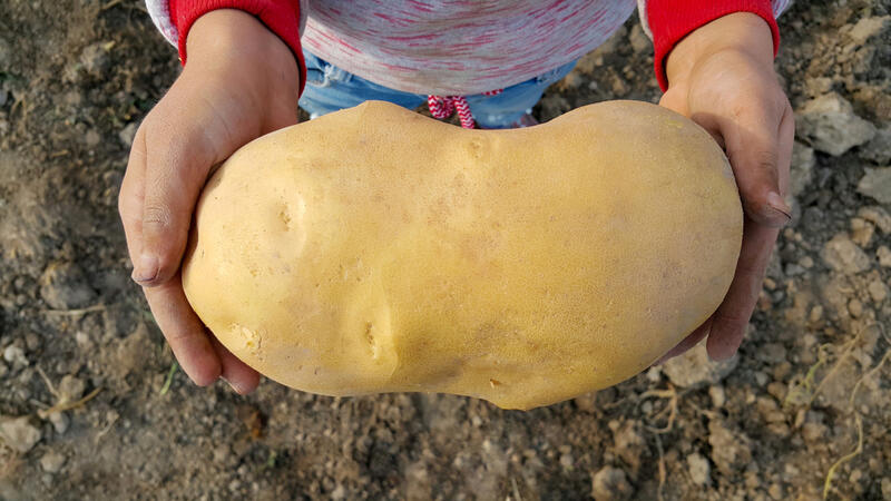 When the couple lugged the mutant-looking potato into their garage and put it on an old set of scales, it weighed in at a remarkable 17½lb (7.9kg). That is equal to a couple of sacks of regular potatoes or a small dog.