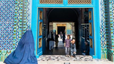 The twin blue domes of the Shrine of Hazrat Ali are one of Afghanistan’s most iconic sights, and pilgrims come from across the country to pay their respects at the tomb contained inside.