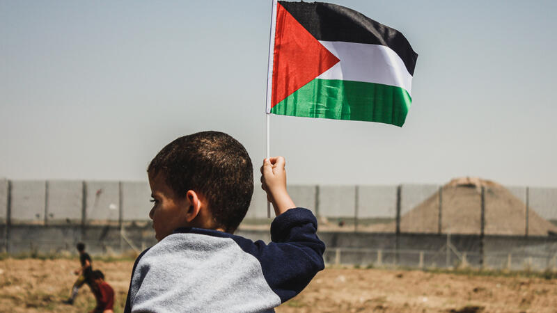 Small kid hold palestinian flag during the "Great March of Return" at the Israeil-Gaza border, on May15, 2019. (Shutterstock/ File Photo)