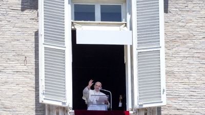 The pope recited the Regina Coelito a gathering of only a few hundred people -- mainly residents of Italy -- compared with the usual thousands. They wore masks and practiced social distancing.