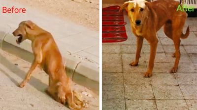 Sammak took the dog home and provided it with a nutritious diet supported by calcium to help repair its bones.