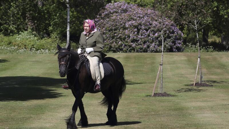 The Queen has been pictured horse-riding in the grounds of Windsor Castle - her first public appearance since the coronavirus lockdown began.