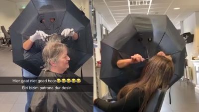 Video: Brilliant Hairdresser Uses Umbrella to Create Distance With Her Clients