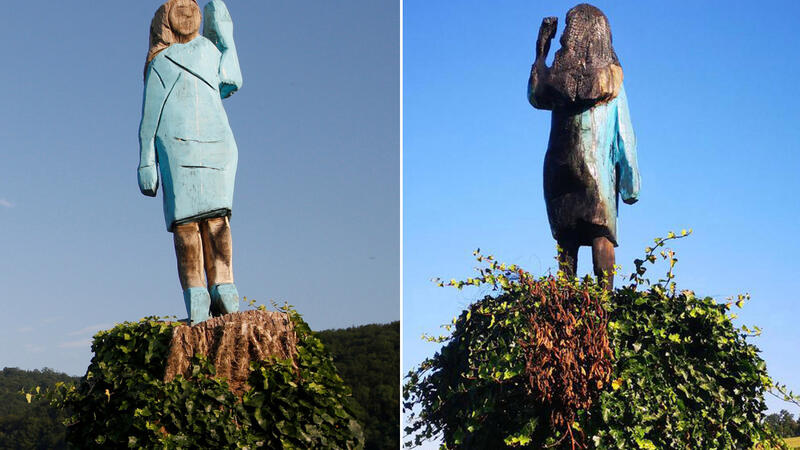 Statue of Melania Trump set on fire in Slovenia