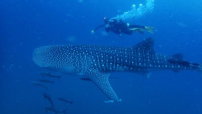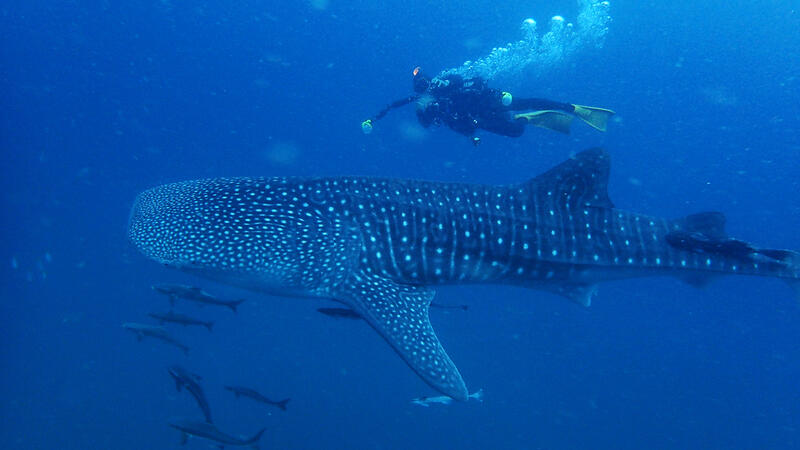 The endangered whale shark is considered a rare sight in the Red Sea, and owes its name to its gargantuan size, with the largest adults reaching up to 13 meters in length – making them among the largest species of fish.