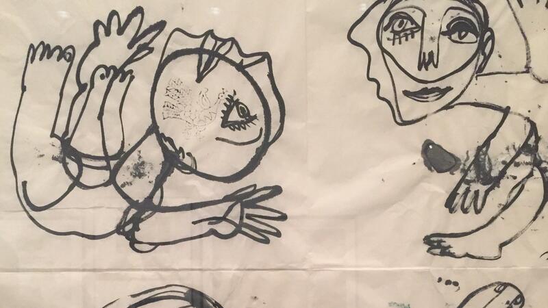 Others spring from darker places. Syrian artist Fadi Yazigi’s “Untitled,” 2013, is an art installation of 20 tiny birds’ legs, perched without bodies in individual plexiglass compartments.