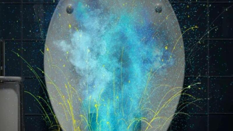 Harpic, the chemical company, used high-speed specialist cameras to capture the firework display of aerosol particles spewed into the air by a toilet's sloshing water.