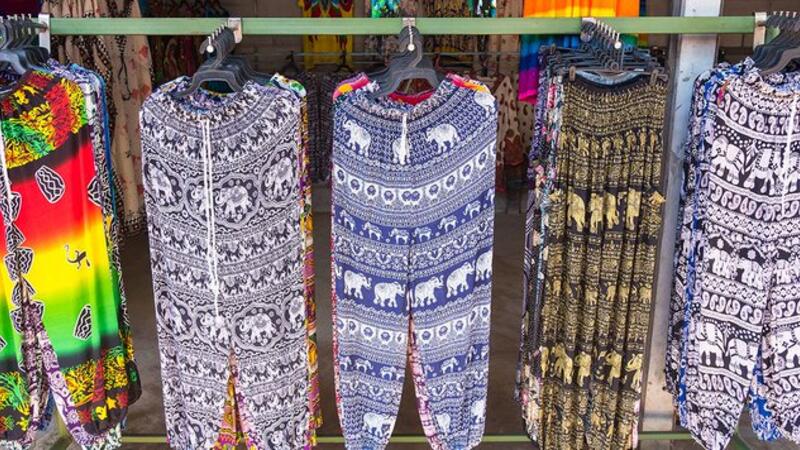The so-called elephant pants are rarely worn by local Thais, but these light and breezy trousers can be found in abundance in tourist areas such as along the pubs and hostels of Bangkok's Khaosan road, once made famous by the 2000 film The Beach starring Leonardo DiCaprio.