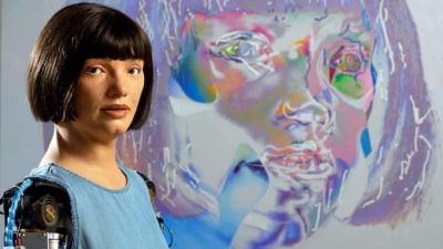 “Ai-Da is a life-size humanoid robot named after Ada Lovelace, the pioneering female scientist and mathematician,” the news release explains. “Completed in 2019, Ai-Da is designed with the capability to create art and uses AI algorithms to produce works that comment on the current and future uses of artificial intelligence.”