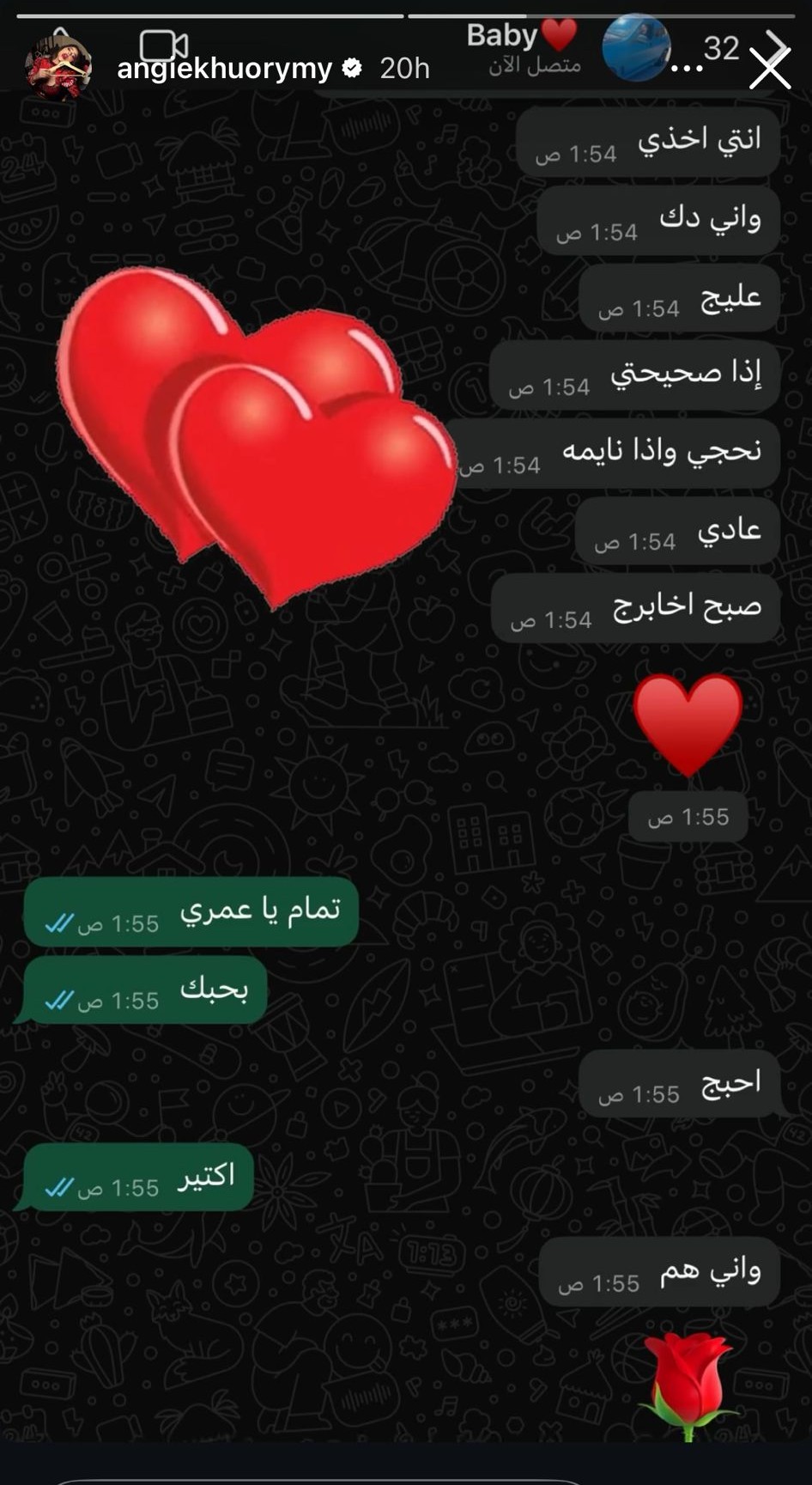 The writing style of the individual was the particular aspect that drew the attention of the followers. Many people were led to believe that Angie's new love interest might be from Iraq as a result of phrases and expressions that were used during the conversation that gave the impression of a possible Iraqi heritage. The texts have caused a surge of speculation among her admirers, although she has not given any confirmation on his identity or nationality.