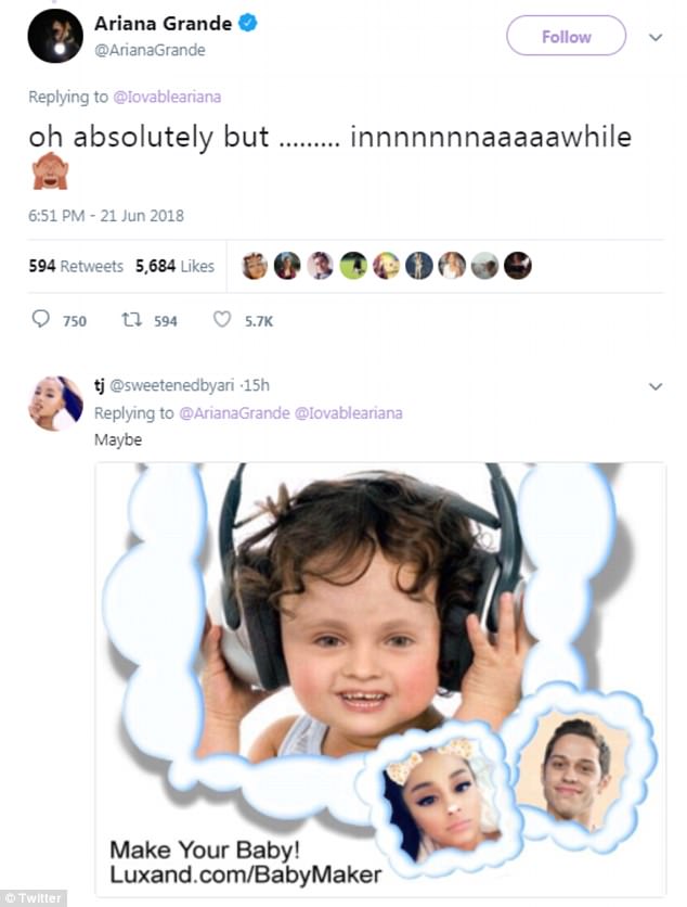 When a third fan tweeted that Grande would have 'the cutest babies ever,' she concurred: 'oh absolutely but ……… innnnnnnaaaaawhile.'