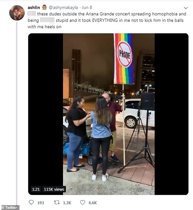 The Thank U, Next songstress, who is an advocate of LGBTQ rights, tweeted her love and support to fans after concertgoers were greeted by two male protesters outside the State Farm Arena holding up a rainbow banner with the word Pride crossed out.