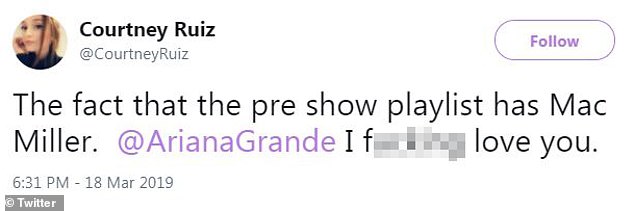 Another said, 'Ariana grande is playing Mac Miller right before her opening song for sweetener tour rn and my heart can’t handle it SO MANY TEARS.'