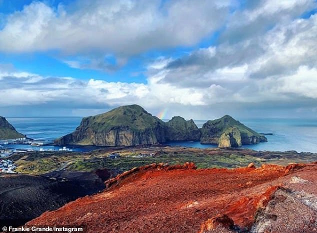 He wrote: 'Today I celebrate 16 months sober... and it is very fitting that I am standing atop a volcano staring at a rainbow as I take this photo, because that has been my journey into recovery over the past 16 months.