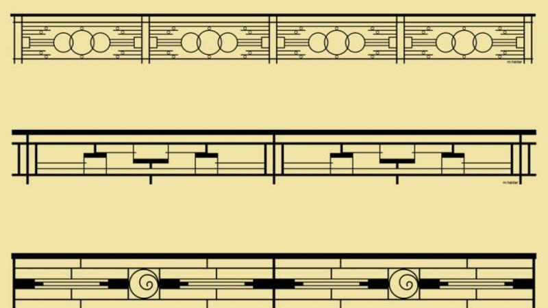 The exhibition shows 40 of Haidar’s 400 patterns, collected from buildings across the city. He captures the patterns using direct surveys in which precise measurements are taken, or using the same techniques as in his architectural practice as a conservationist, taking photos and then flattening the images in order to take the dimensions and proportions.