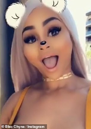 Childlike: Earlier in the day, Blac got playful with animal Snapchat filters