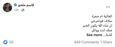 Malho's post said: 'Dear Um Hamza, Sulaf Fawakherji, I hope the news about you and Wael is a lie'
