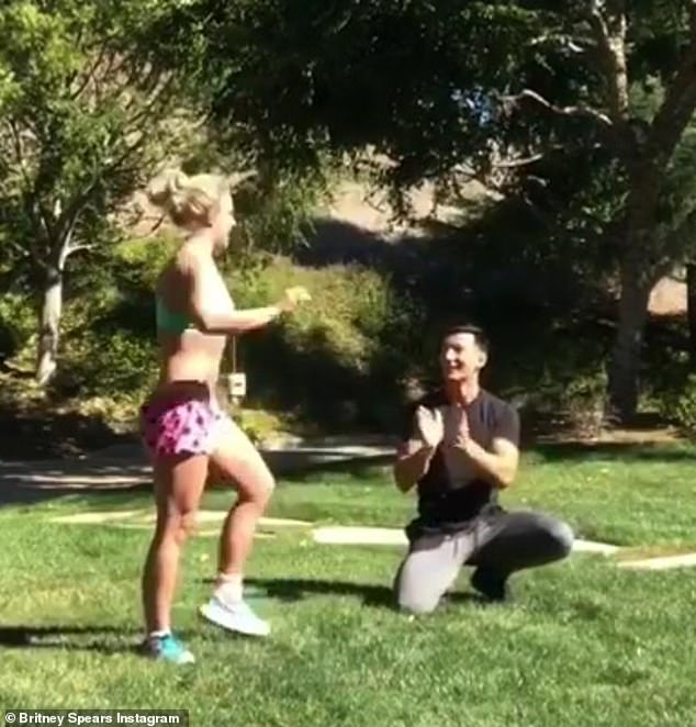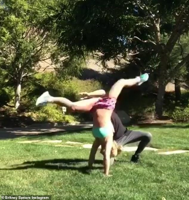The video saw Britney perform a series of backflips wearing a sports bra and pair of skimpy shirts.