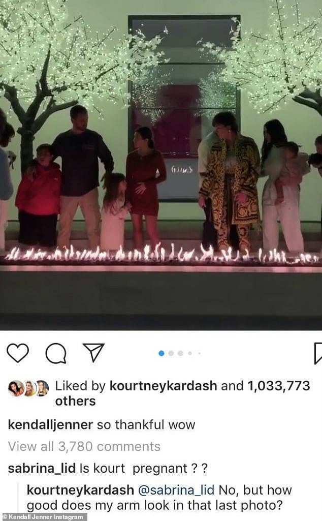 After sister Kendall Jenner shared a video of her entire family on Thanksgiving, one fan commented: 'Is kourt pregnant??'.