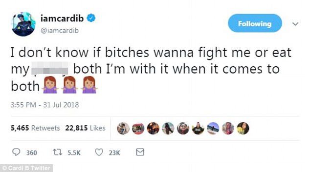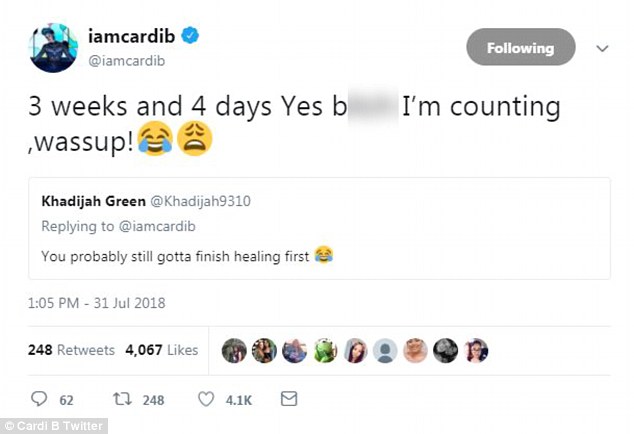 She's counting: Cardi has been tracking of things