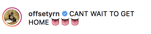Offset, 27, took to his Instagram this Saturday where he shared a screenshot from a Facetime call with his wife showing her tattoo and captioned the post, "CANT WAIT TO GET HOME."