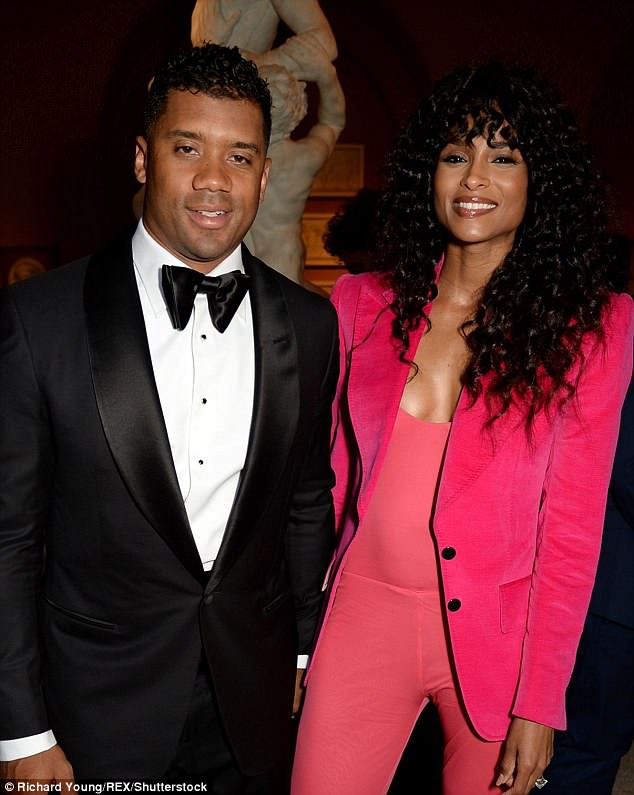 Football star: Also at the party was the 1, 2 Step singer's NFL star husband Russell Wilson, 29, who looked dapper in a tuxedo and bow tie