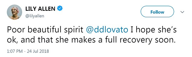 Support: Lily Allen sent well wishes to Demi as soon as news hit