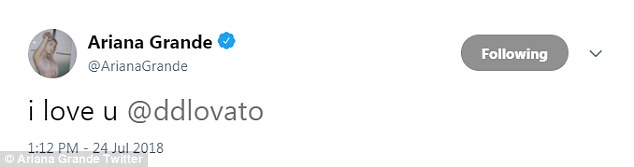 Sending love: Ariana also tweeted a message to the singer